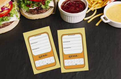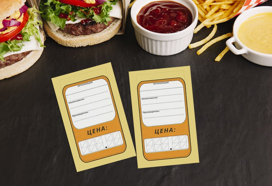 • Стоимость разработки дизайн-макета ценников 90х50мм 150 — 220 грн.