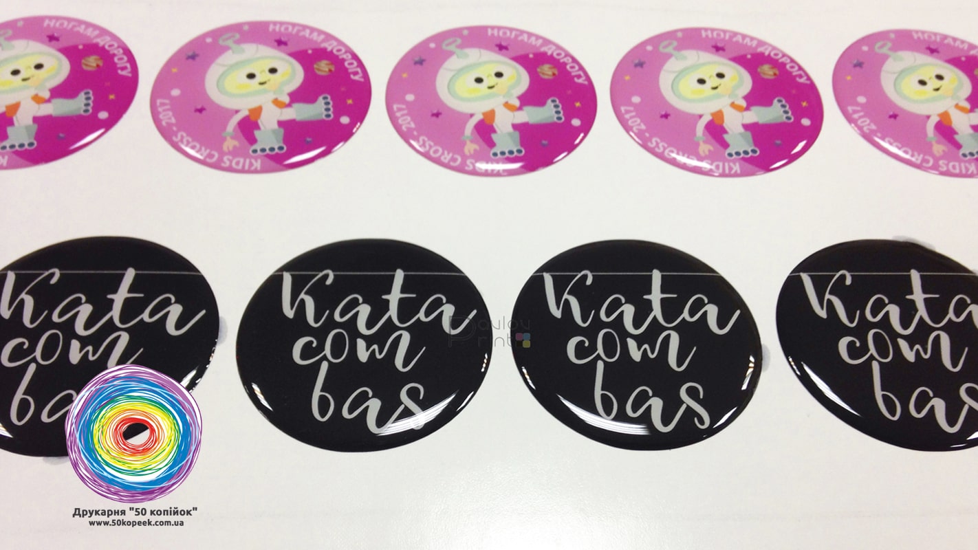 Изготовление и печать круглых объемных наклеек - шильдов