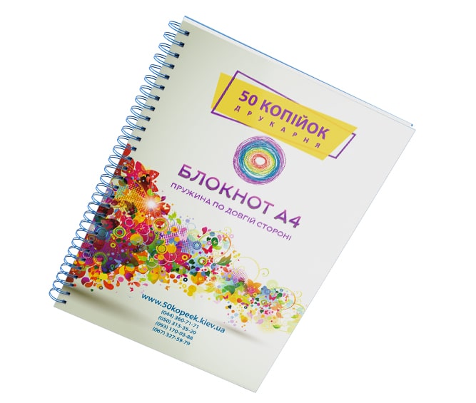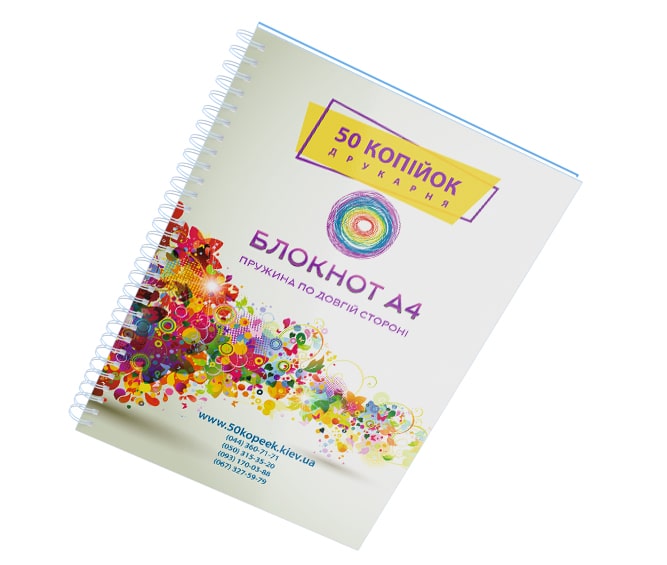 • Вартість розробки дизайн-макета блокнота А6 на пружині з короткого боку — 500–550 грн.