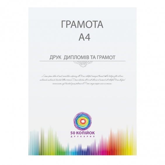 • Вартість розробки дизайн-макету грамоти А4 350 — 425 грн.