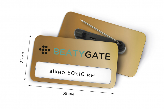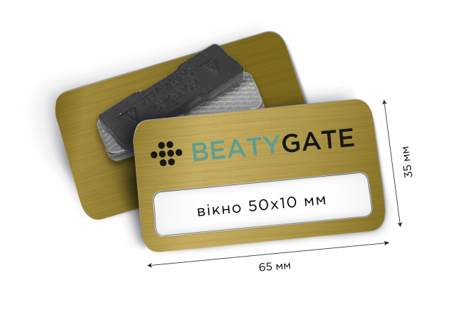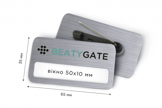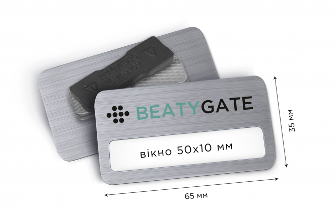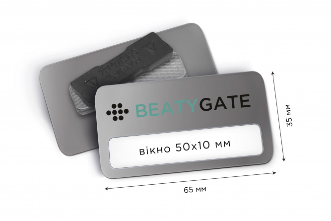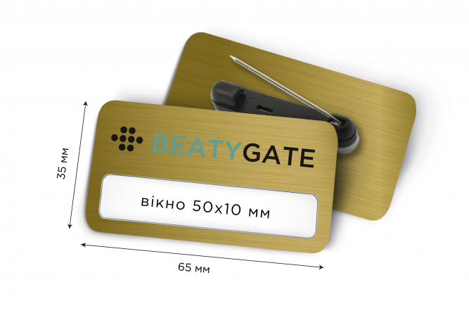 Металеві іменні бейджі 65*35 з вікном 50*10 мм