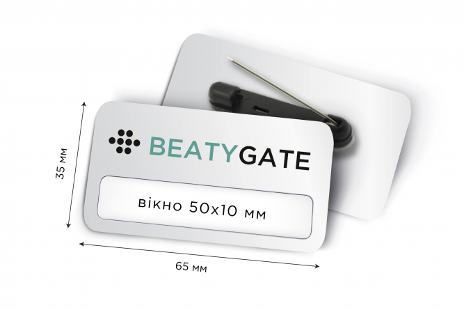 Бейджі 65*35 з вікном 50*10 мм: виготовлення і друк