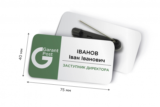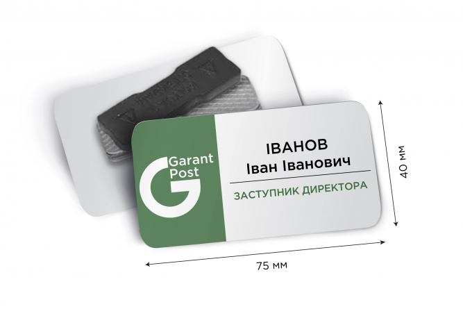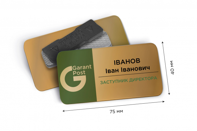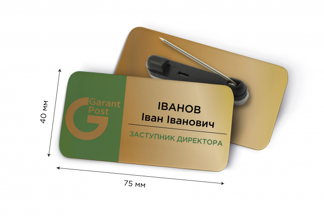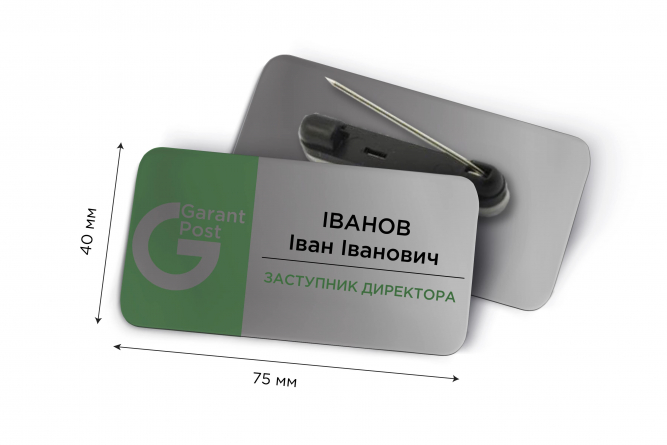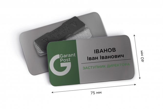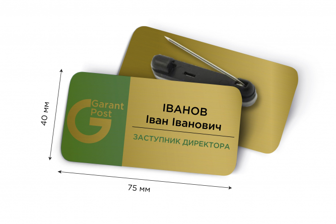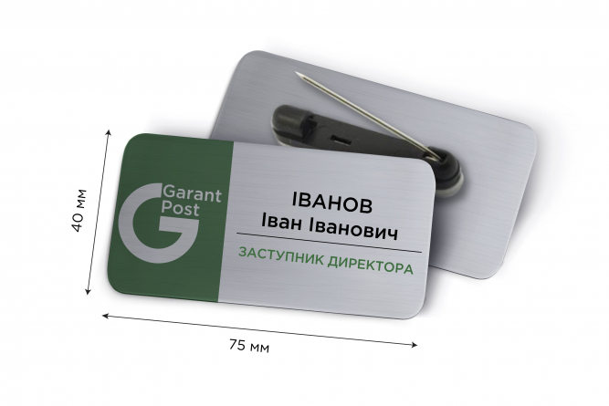 Іменні металеві бейджі 75*40 мм: виготовлення і друк