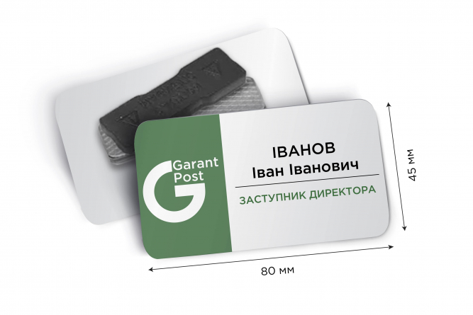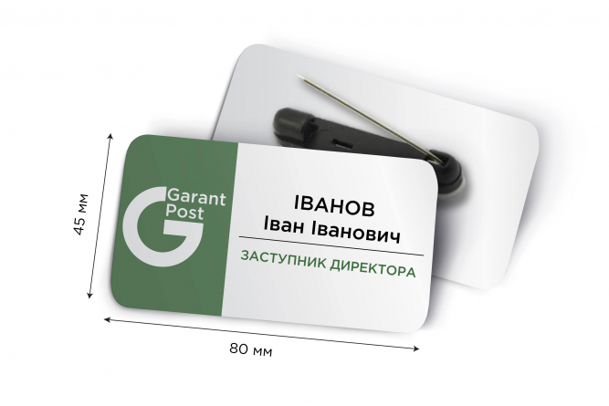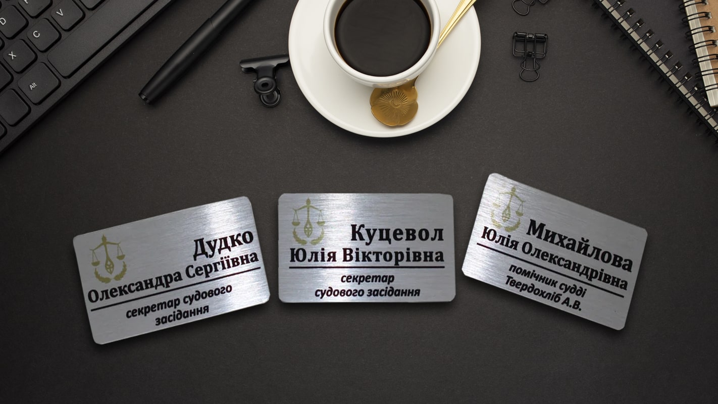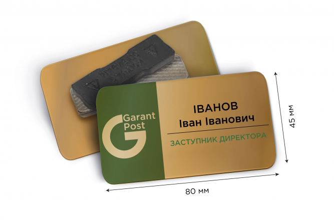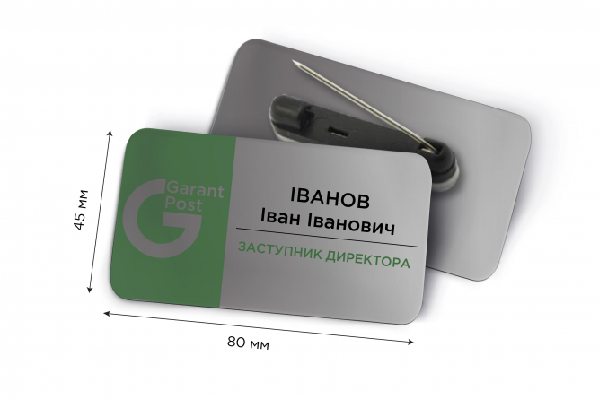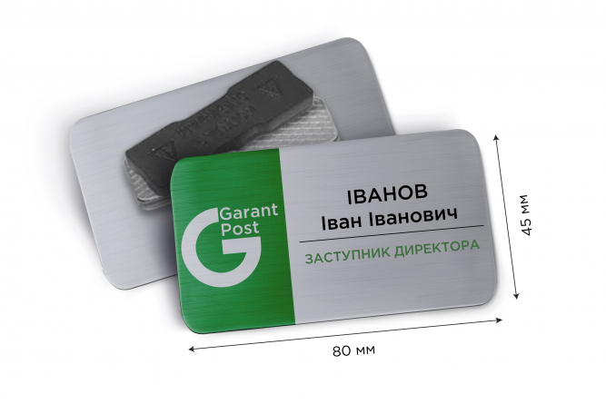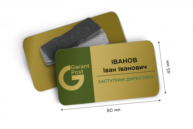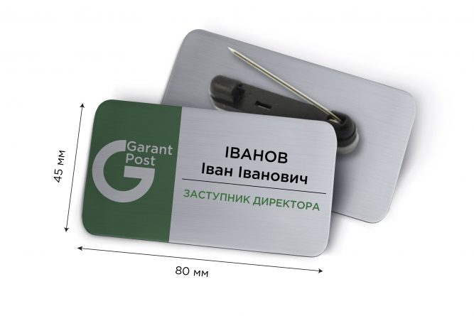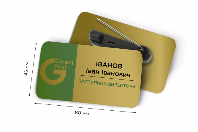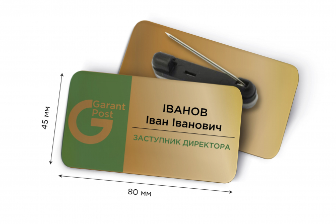 Іменні металеві бейджі 80*45 мм: виготовлення і друк