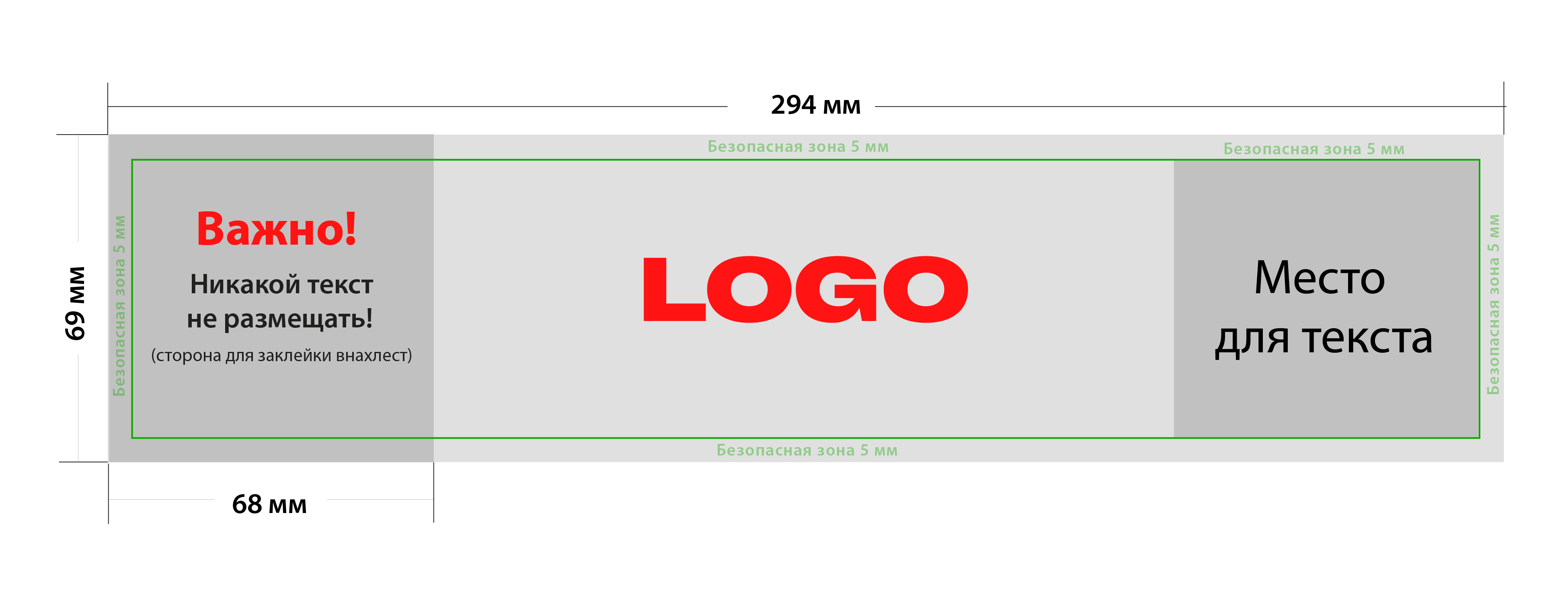 Необходимо подавать для печати в размере 294*69 мм (вылеты под обрез по периметру не добавлять). Важные элементы в дизайне должны располагаться не ближе 5 мм к краям оригинал-макета.