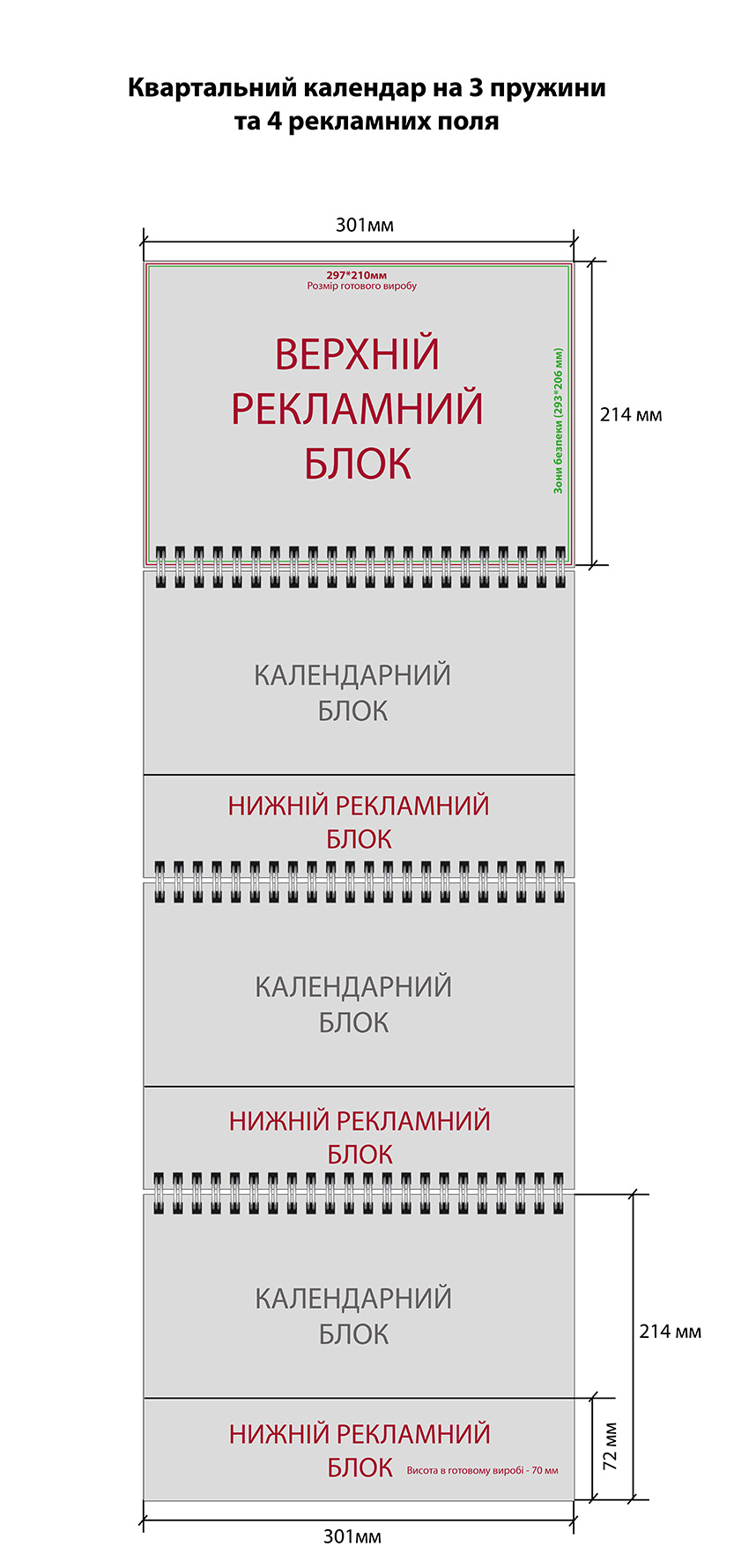 • До 500 шт. — в готовом виде 210×297 мм, подавать для печати 214×301 мм (по 2 мм с каждой стороны под обрез). Важные элементы публикации должны располагаться не ближе 5 мм к краям макета.