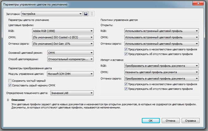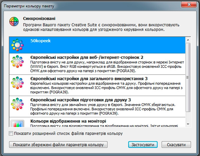 Далі необходимо налаштувати систему управління кольором в графічних пакетах.