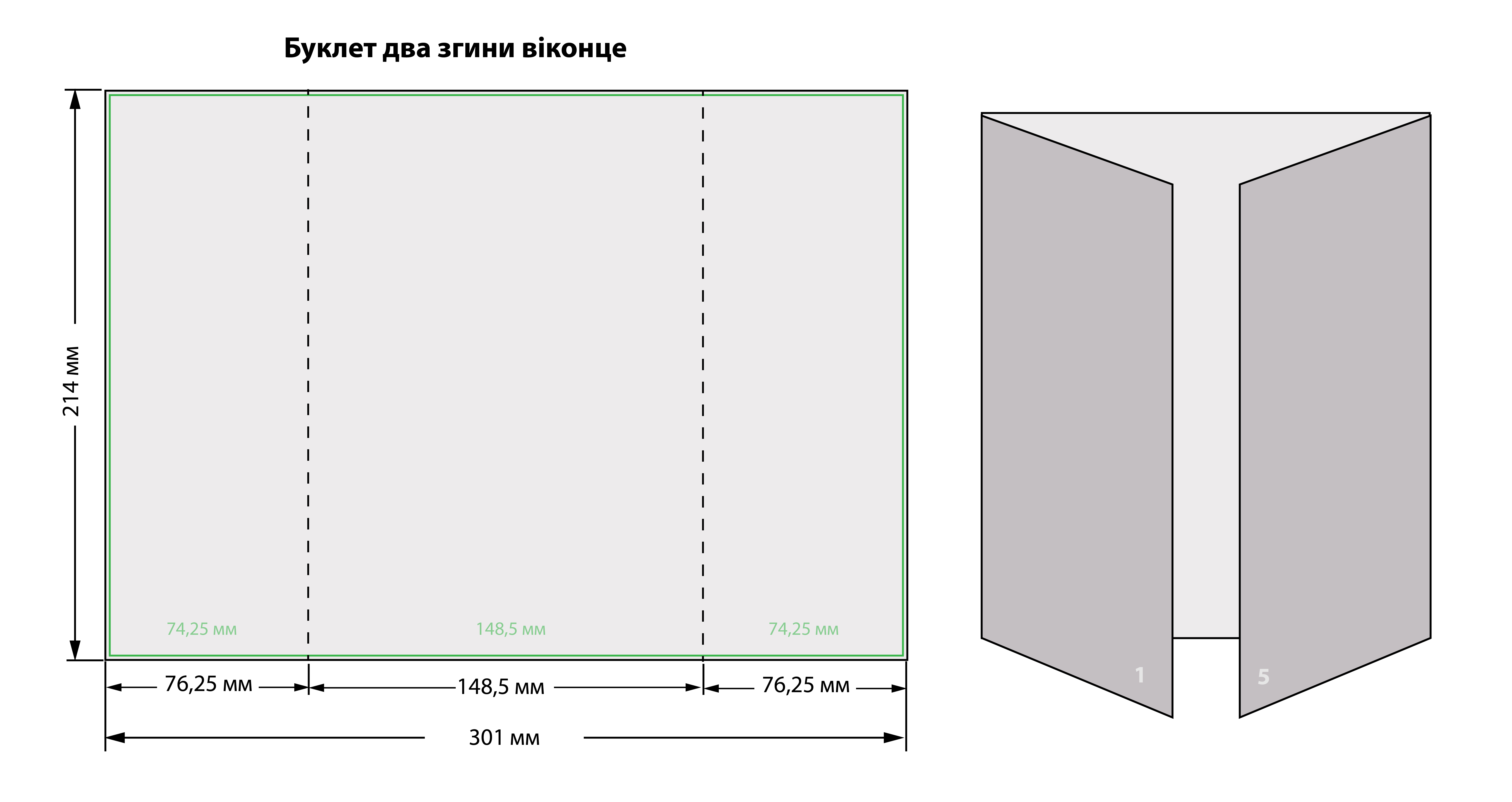Цифровий пакувальний папір A5 від 10 шт. (цифровий друк) або на іншій щільності- в готовому виді 210×148 мм, подавати для друку 154×216 мм (по 3 мм з кожного боку під обріз). Важливі елементи публікації повинні розташовуватися не ближче 7 мм до краю обріза.