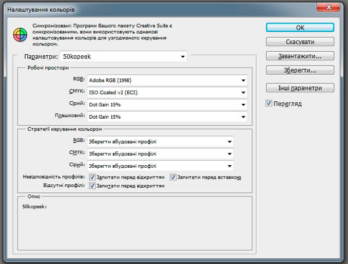 Далі необхідно налаштувати систему управління кольором в графічних пакетах.