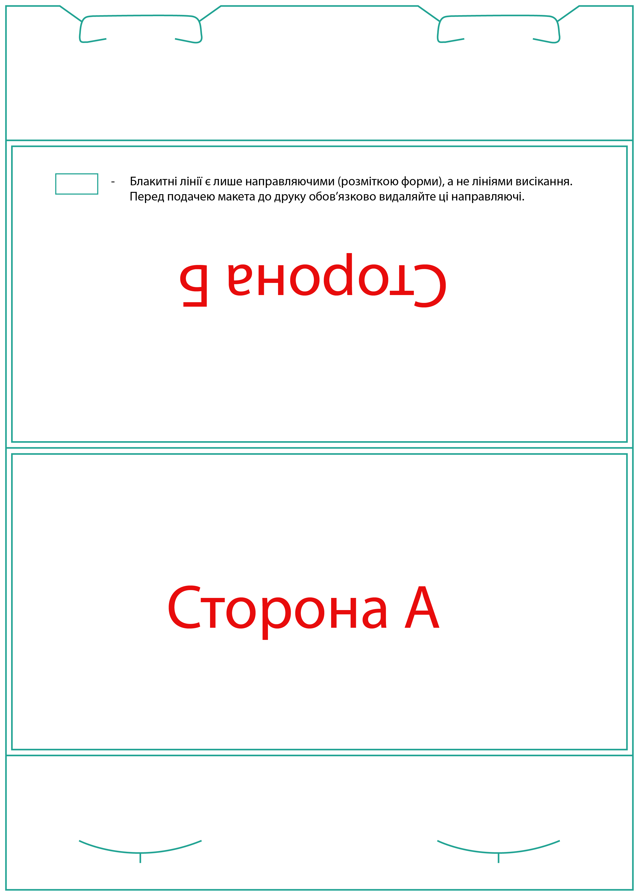 Необхідно подавати для друку 294*69 мм (вильоти під обріз по периметру не додавати). Важливі елементи в дизайні повинні розташовуватись не ближче 5 мм до країв оригінал-макета.