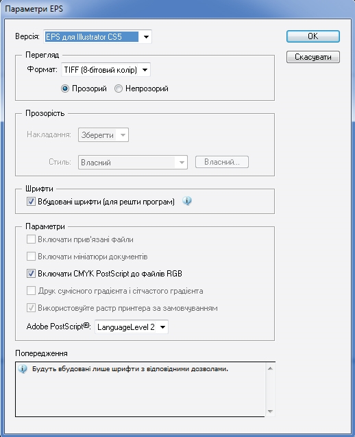Важливо! З Photoshop в PDF не зберігати, тільки *tif або *.eps !