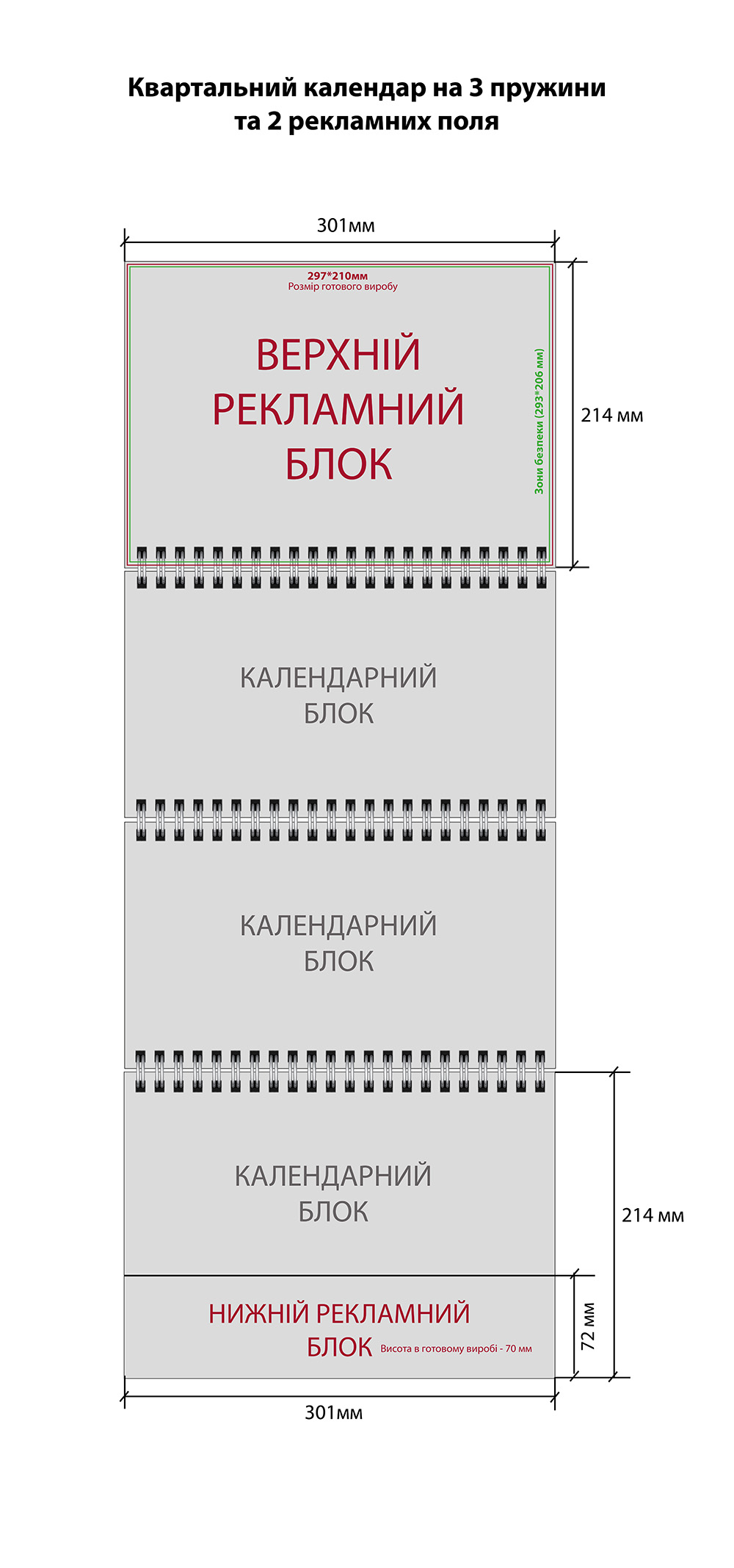 • 1000 шт. і більше — подавати для друку 210×91 мм. Важливі елементи публікації повинні розташовуватися не ближче 4 мм до краю обріза.