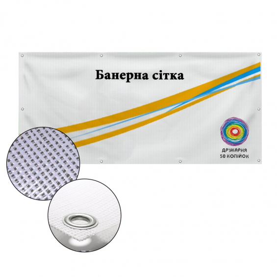 • Банерна сітка з кріпленням із люверсів (металеві отвори).