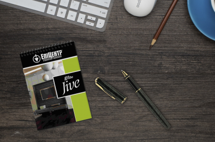 • Вартість розробки дизайн-макета блокнота А6 на пружині з короткого боку — 500–550 грн.