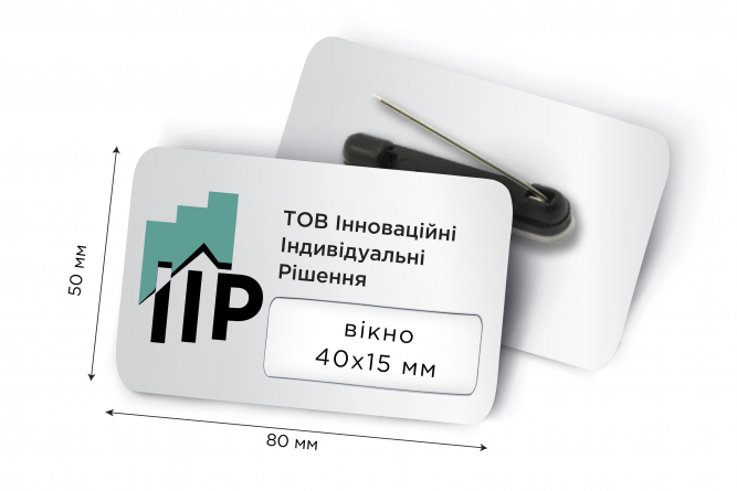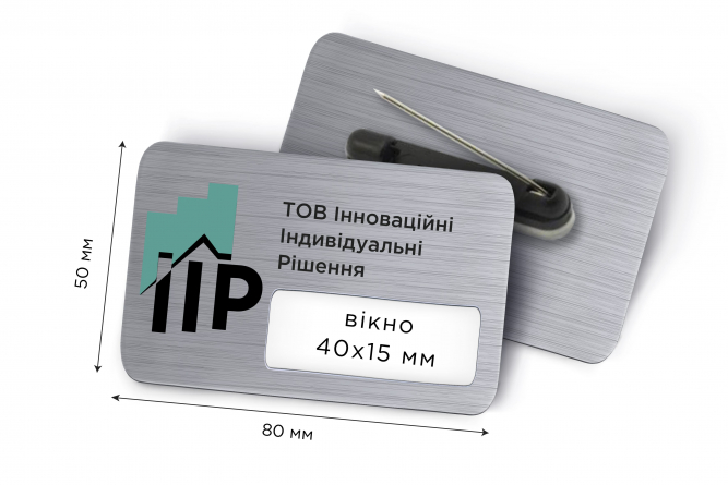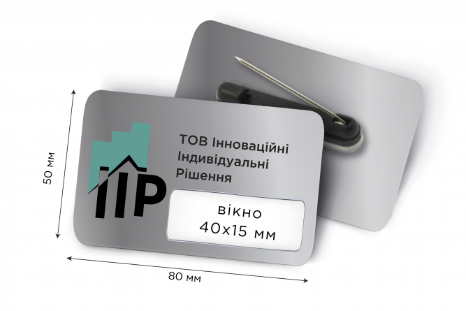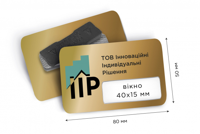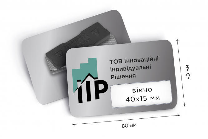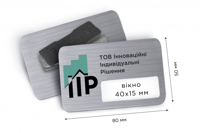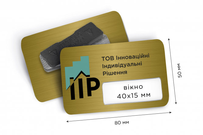 Металеві іменні бейджі 80*50 з вікном 40*15 мм
