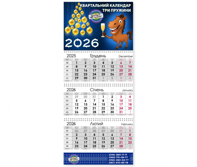 Друк квартальних календарів на 3 пружини 2 рекламних блоки