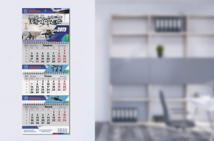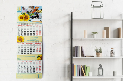 • Календар складається з 4 рекламних блоків, які брендуються під Замовника.