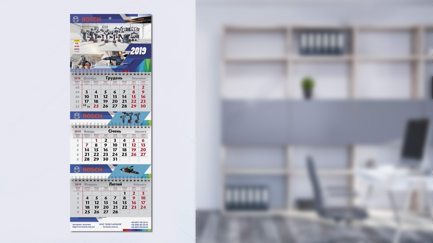 • Календар складається з 2 блоків, які брендуються під Замовника.