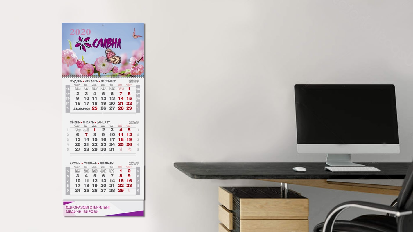 Друк квартальних календарів на 3 пружини 4 рекламних поля