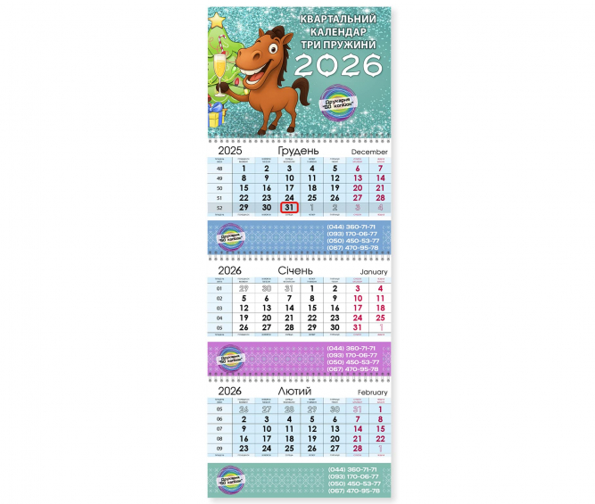 Календар квартальний на 3 пружини 4 рекламних блоки