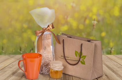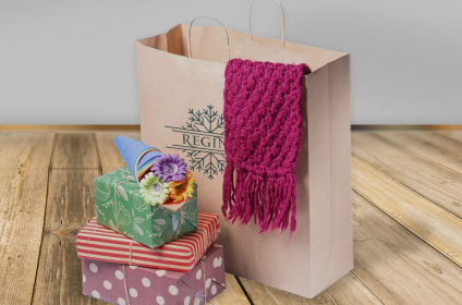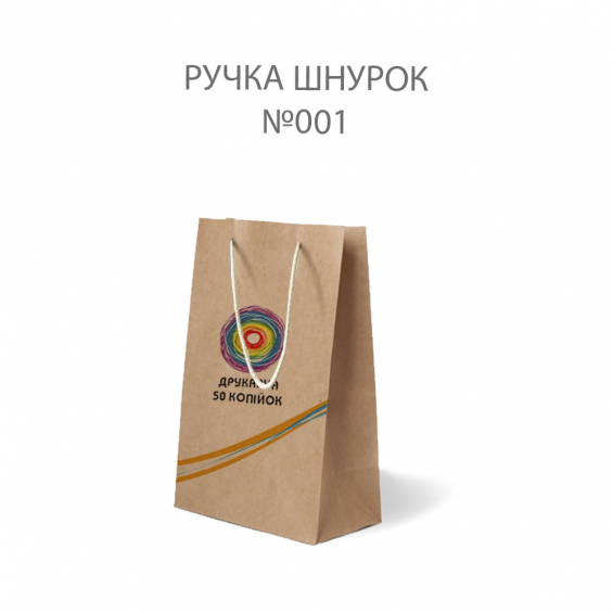 • Кручені паперові ручки з крафт-паперу надійно приклеєні з середини пакету.