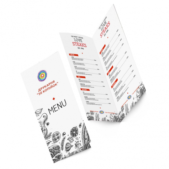 • Вартість розробки дизайн-макету Меню 148*420 мм 520 - 700 грн.