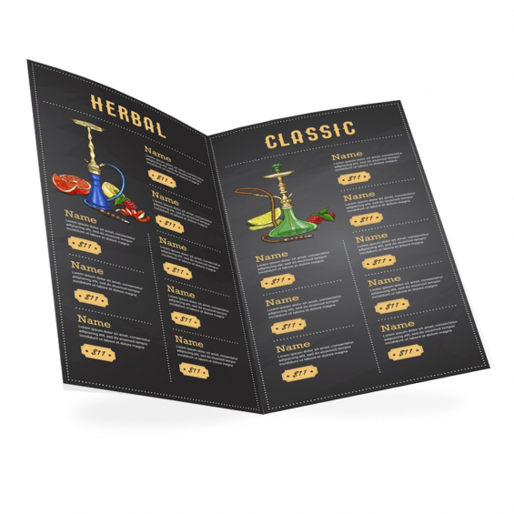• Вартість розробки дизайн-макету Меню 210*297 мм 520 - 700 грн.