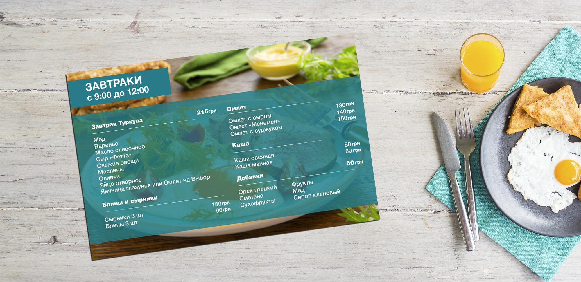 • Вартість розробки дизайн-макету офсетного меню 350 — 425 грн.