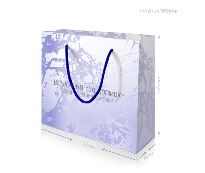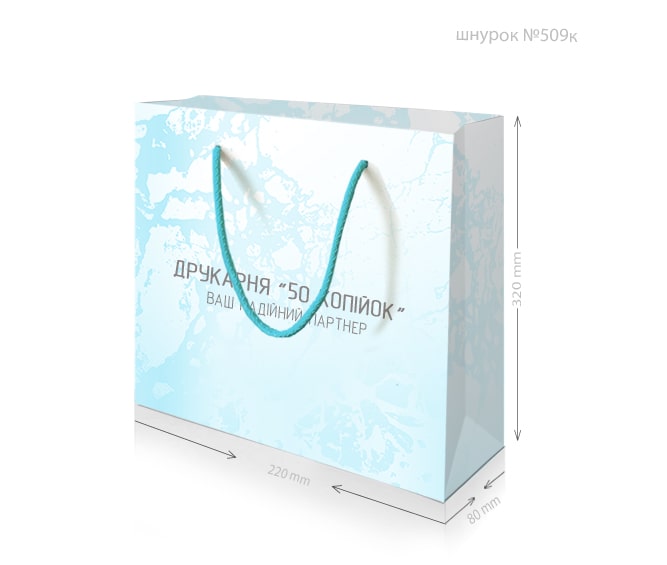 • Ручки: паперові кручені або кольорові текстильні.