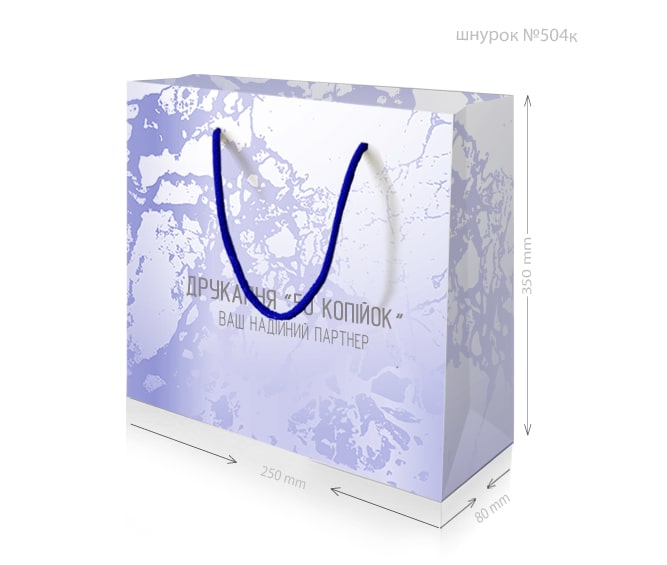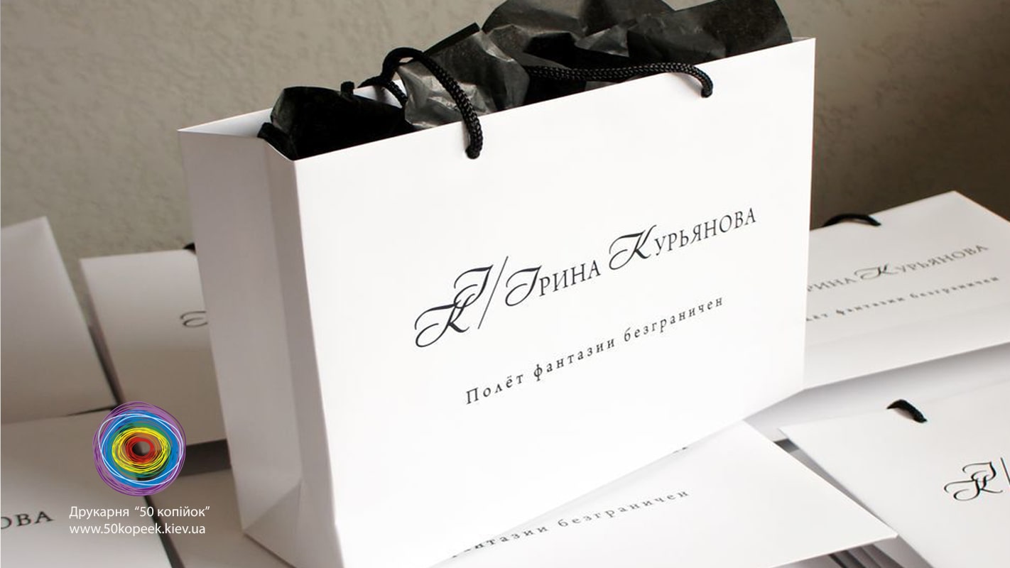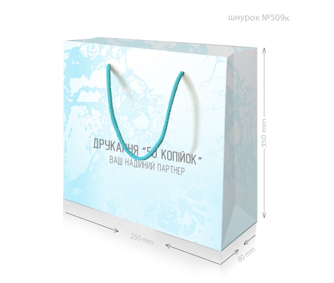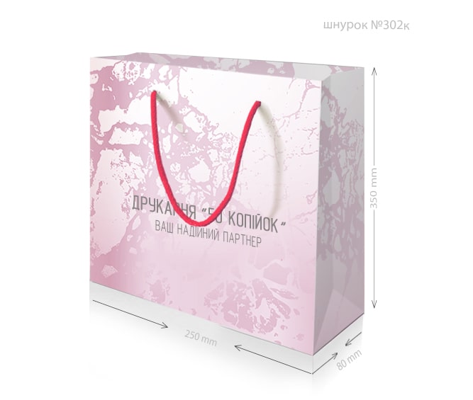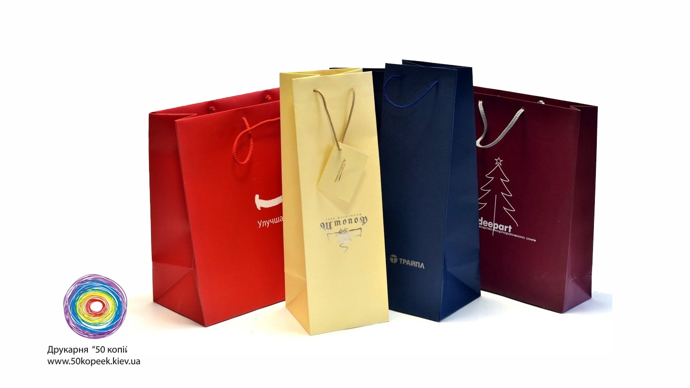 • Ручки: паперові кручені або кольорові текстильні.