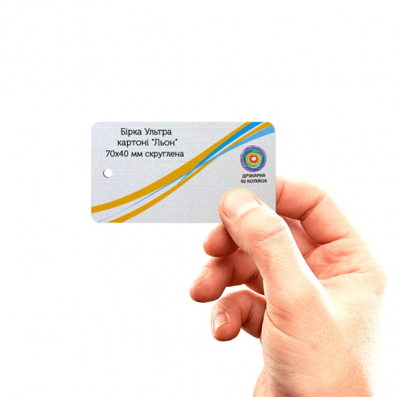 • Стоимость разработки дизайн-макета бирок скругленных на картоне "Лен" 70х40мм 125 — 200грн.