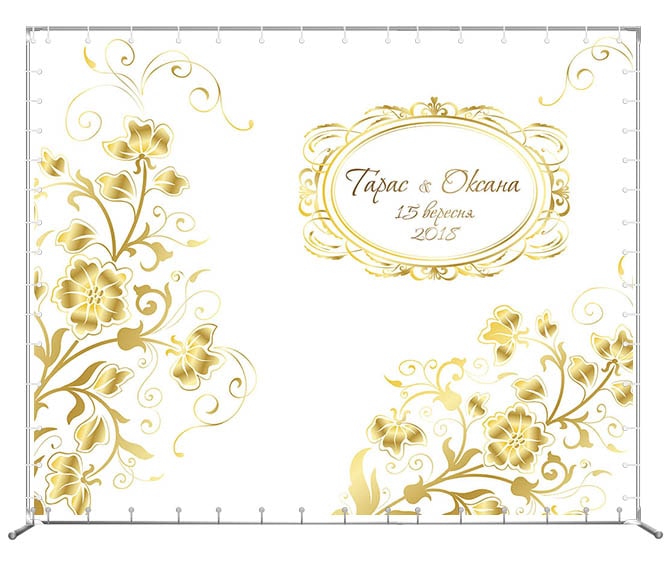 Изготовление и печать баннерных фотозон на свадьбу "Золотые цветы"