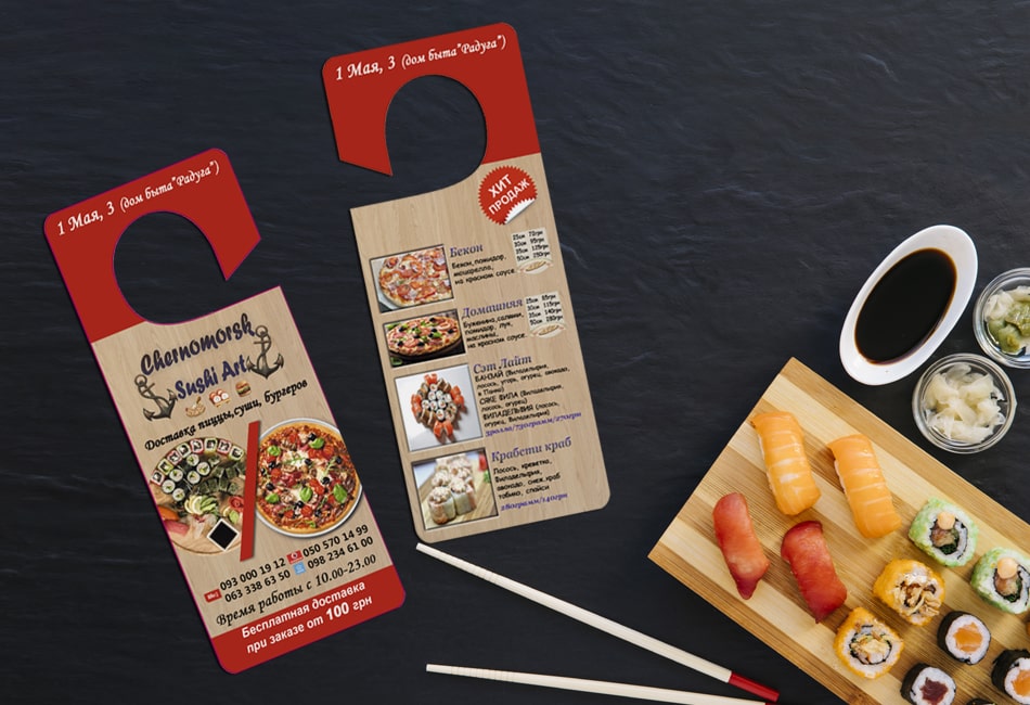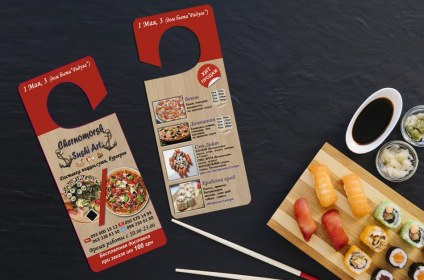 Хенгеры на дверные ручки исполняют роль рекламных листовок — только более интересный их вариант. Благодаря нетривиальному представлению информации, хенгер не отправляется сразу в мусор — поэтому у него гораздо больше возможностей привести потенциального покупателя в ваш магазин, чем у листовки.