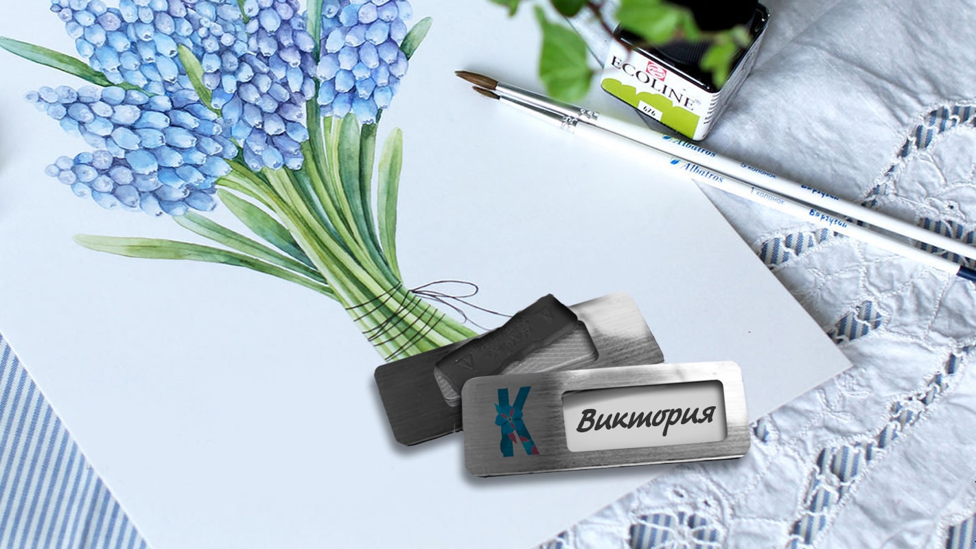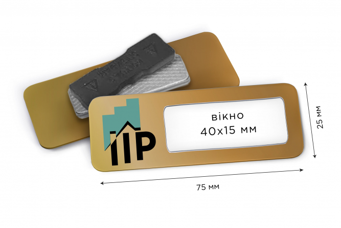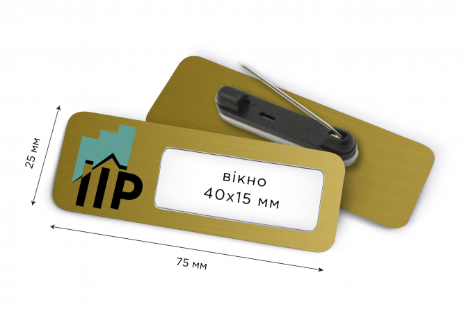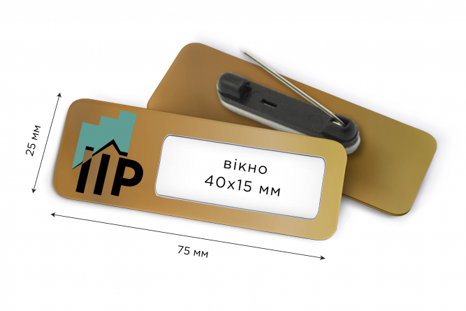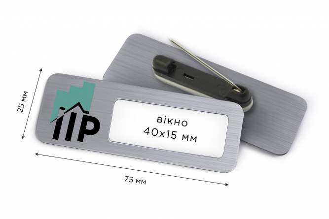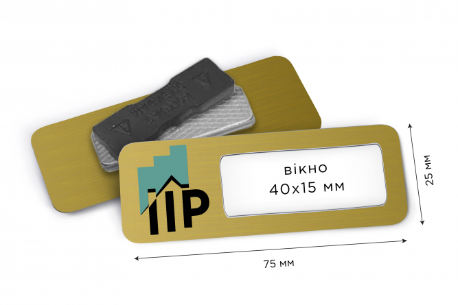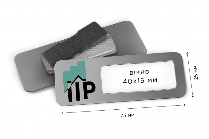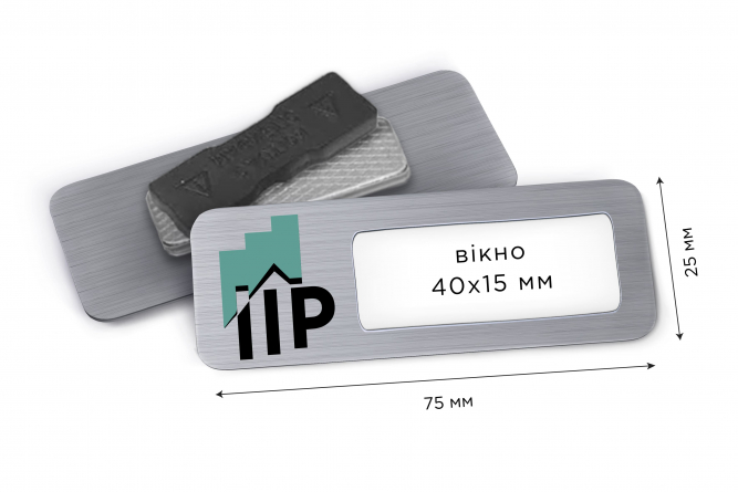 Металлические именные бейджи 75*25 с окном 40*15 мм