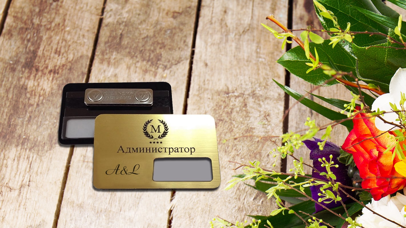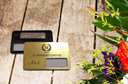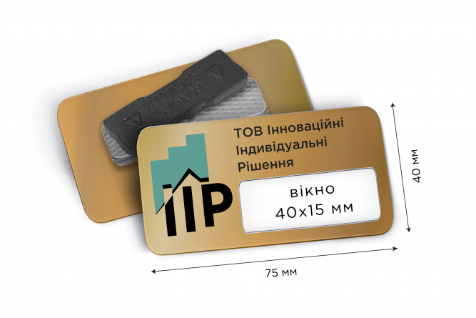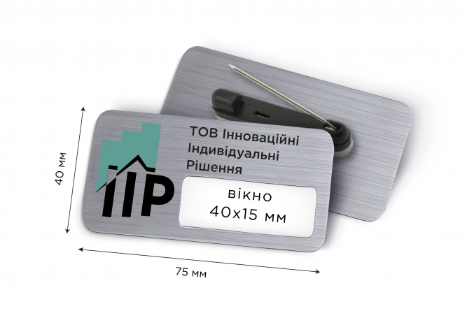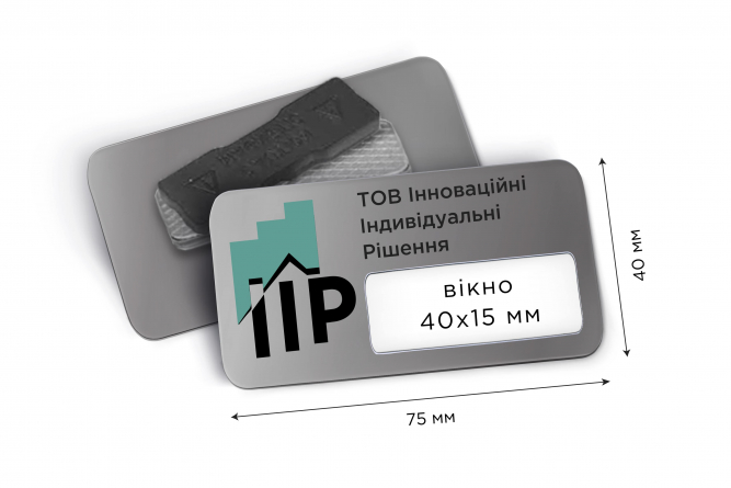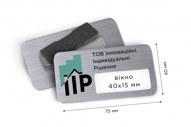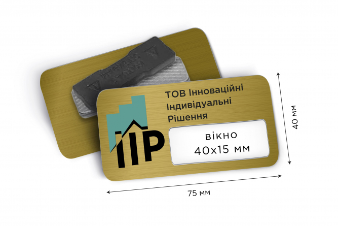 Металлические именные бейджи 75*40 с окном 40*15 мм