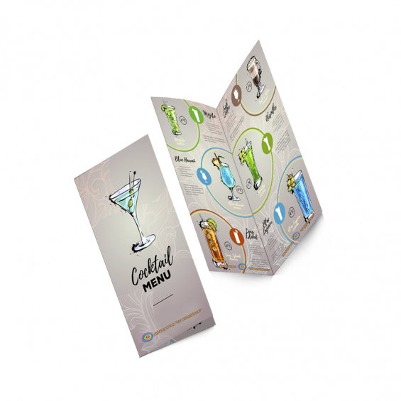 Коктейльное меню 105*297 мм с одним сгибом по длинной стороне