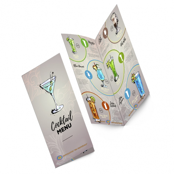 • Стоимость разработки дизайн-макета коктейльного меню 148*420 мм (1 сгиб по длинной стороне) 550 — 750 грн.
