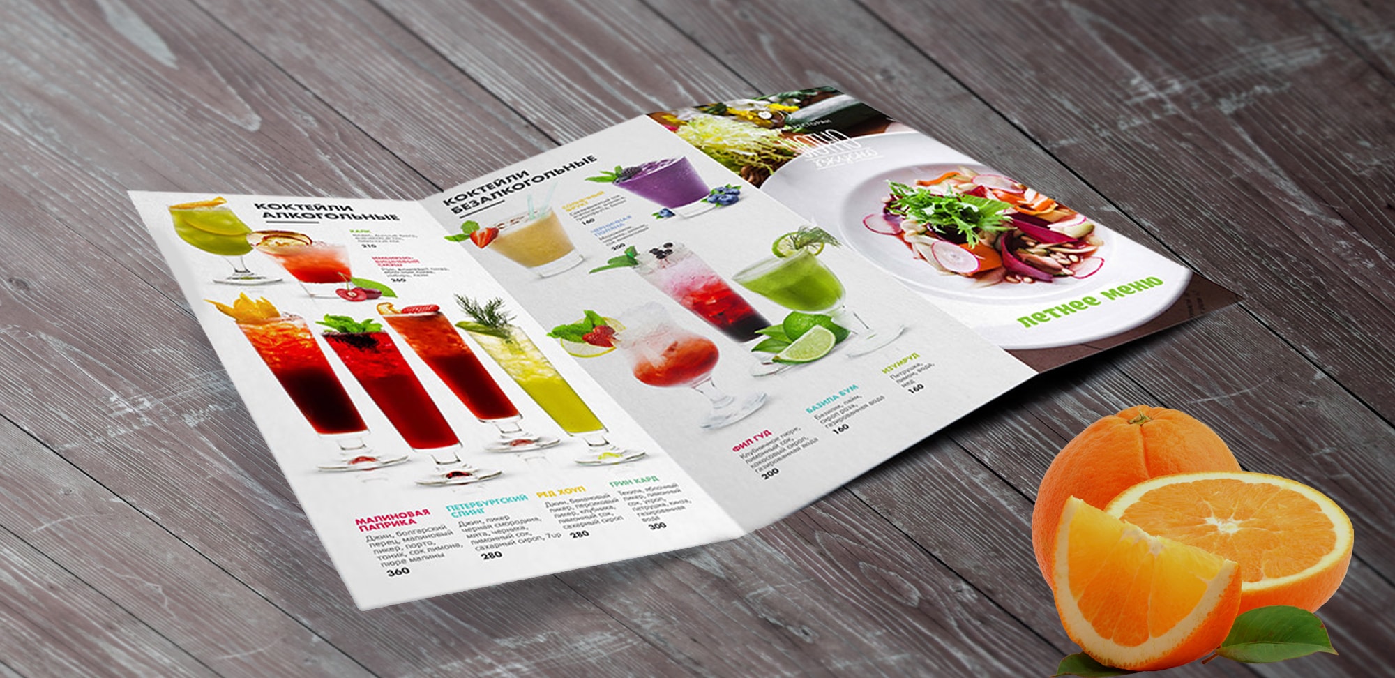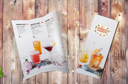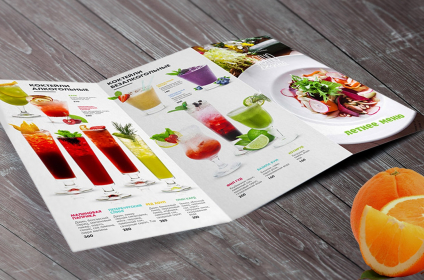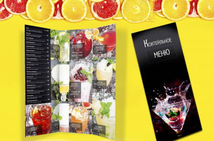 • Стоимость разработки дизайн-макета коктейльного меню 70*297 мм (2 сгиба по длинной стороне) 550 — 750 грн.
