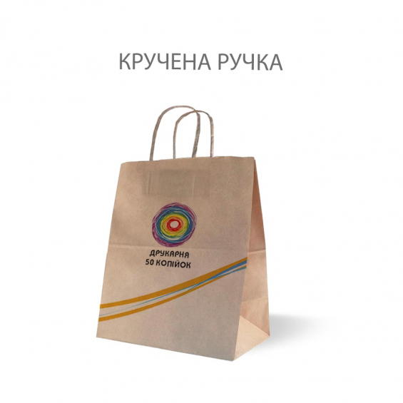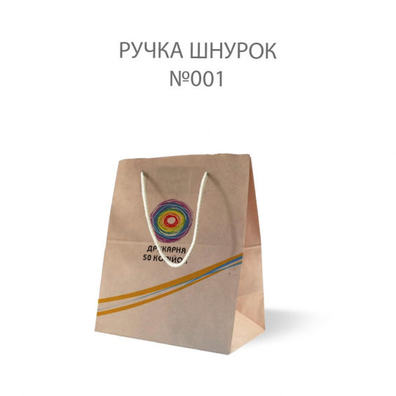 • Крученые бумажные ручки из крафт-бумаги надежно приклеены изнутри пакета.