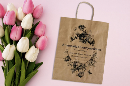 Печать на коричневых эко-пакетах крафт 230х120х280мм