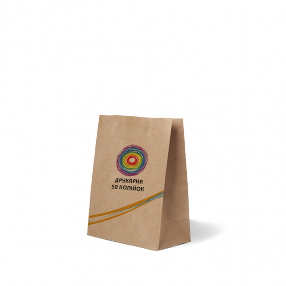 Печать на коричневых эко-пакетах крафт без ручек 190х110х280мм