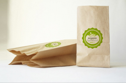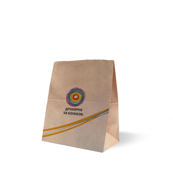 Печать на коричневых эко-пакетах крафт без ручек 250х150х350мм