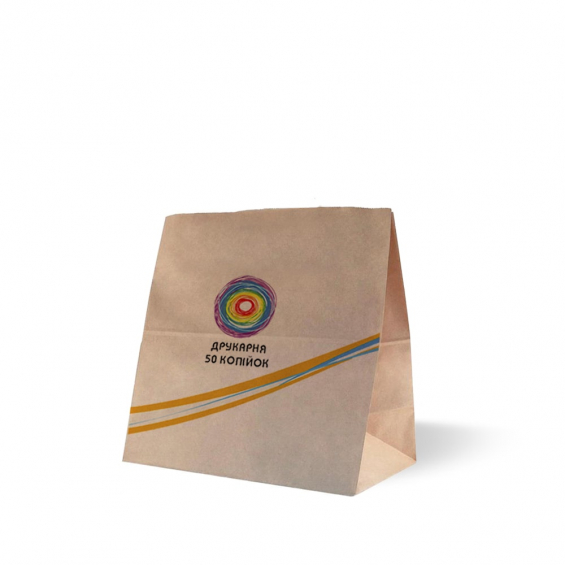Печать на коричневых эко-пакетах крафт без ручек 320х150х300мм