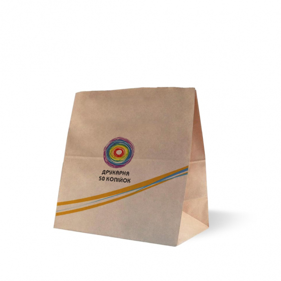 Печать на коричневых эко-пакетах крафт без ручек 320х150х380мм