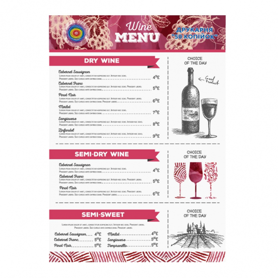 Винная карта А3: изготовление и печать