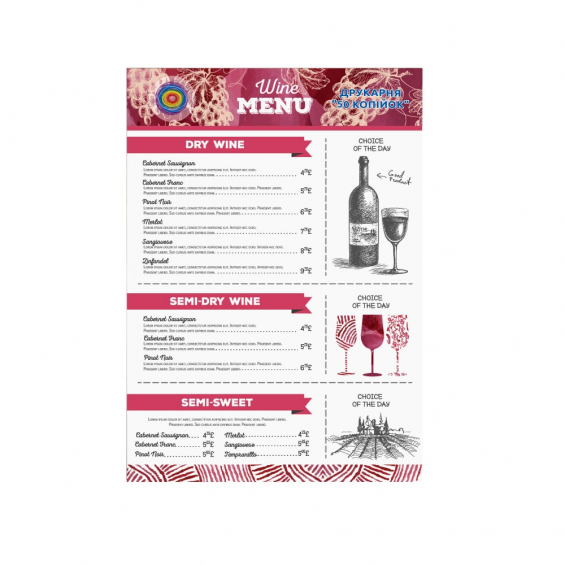 Стоимость разработки дизайн-макета меню А4 350 - 480 грн./1 стр.