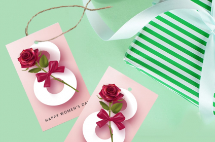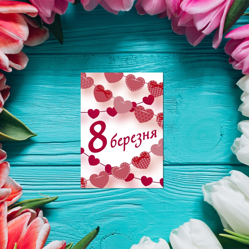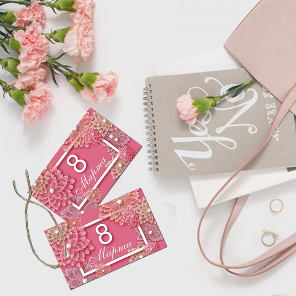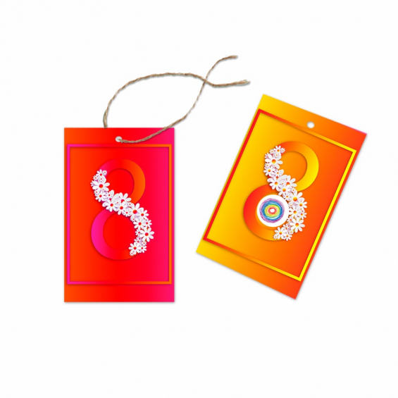 Печать ярлыков поздравительных на 8 Марта 50х90х3 мм