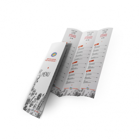 Печать меню для ресторанов 70*297 мм с двумя сгибами
