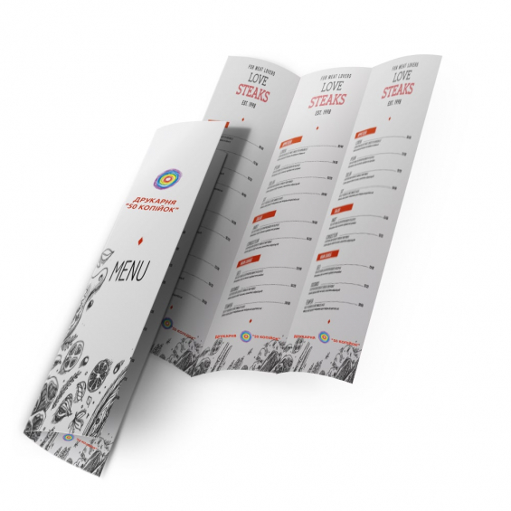 Печать меню для ресторанов 99х420 мм с двумя сгибами