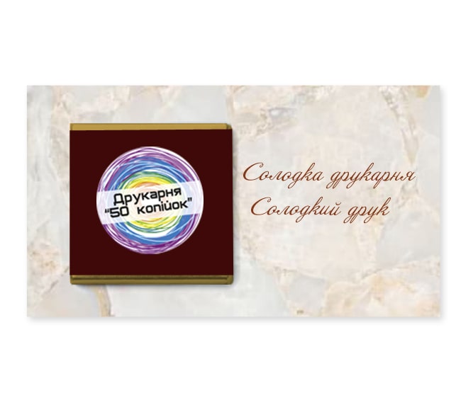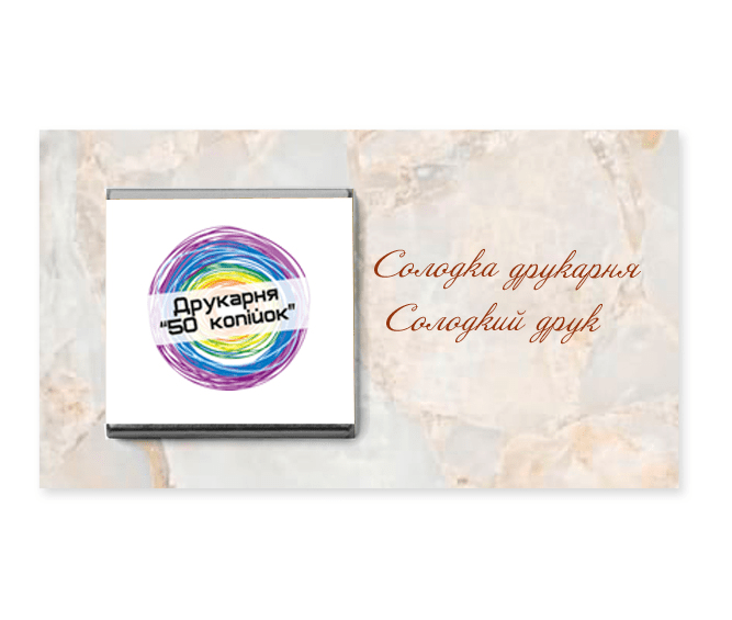 Шоколад с логотипом приклееный на открытку 50*90 мм